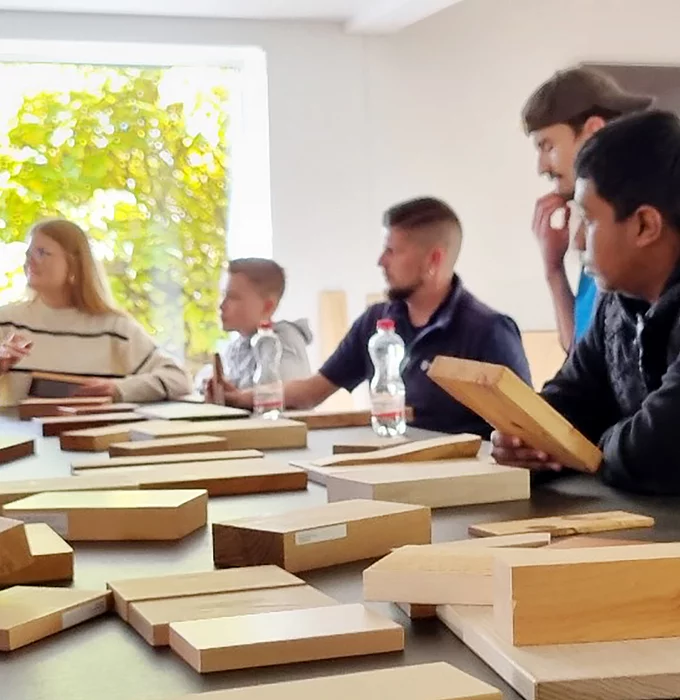 Danach sind wir mit dem Bus nach Biel zum Hauptsitz von Swatch gefahren – ein Gebäude mit sehr eindrücklicher Holzkonstruktion. Wir konnten sehen, was mittlerweile mit Holz alles hergestellt werden kann – viel mehr als nur Böden oder Decken. Als Letztes gingen wir zur Höheren Fachschule Holz der BFH. An der Berner Fachhochschule für Architektur, Holz und Bau werden Studierende, die sich für Holz interessieren, ausgebildet. Dabei ging es für uns als Erstes in ein Schulzimmer, wo wir mit einem digitalen Quiz zum Thema Holz starteten, und wo uns die Lehrerin einige spannende Dinge über Holz erzählte. Danach wurden wir in zwei Gruppen aufgeteilt und machten einen kleinen Rundgang über das Schulareal. Wir haben uns auch verschiedene Labors angeschaut, in denen Studierende gerade mit Holz experimentierten, um herauszufinden, wie man Holz sonst noch nutzen kann. Sie machten auch Versuche mit Robotern, die in Zukunft die Arbeit erleichtern sollen. Beide Tage waren sehr spannend und informativ. Der Kurs hat unser bisheriges Wissen über Holz stark erweitert.