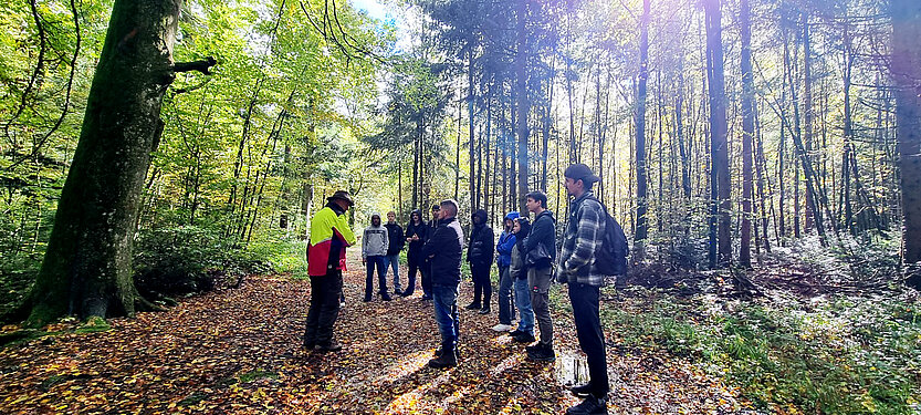 Am 10. und 11. Oktober fand für Lernende, die im ersten Lehrjahr sind, ein Branchenkurs in Solothurn statt. Es nahmen verschiedenste Personen im Alter von 16 bis 36 am HWS Branchenkurs teil, dort trafen Kaufmänner auf Logistiker, Schreiner auf Chauffeure – jedoch alle mit der Begeisterung für Holz und der Hoffnung, mehr über Holzwerkstoffe zu erfahren. Trotz schlechtem Wetter und Regen ging es am ersten Tag mit dem Kursleiter Beat Sutter in den Wald, um dort den Alltag eines Försters kennenzulernen. Den Kursteilnehmenden wurden die drei häufigsten Bäume vorgestellt: die Buche, die Fichte und die Eiche. Es wurde erklärt, wie man die Bäume unterscheiden kann. Darüber hinaus gab es viele Fakten über den Wald und die verschiedenen Arten der Bäume, welche viele der Teilnehmenden so nicht erwartet hatten. Wer hätte zum Beispiel gedacht, dass es nur drei Sekunden braucht, bis im Schweizer Wald ein Kubikmeter Holz nachgewachsen ist?