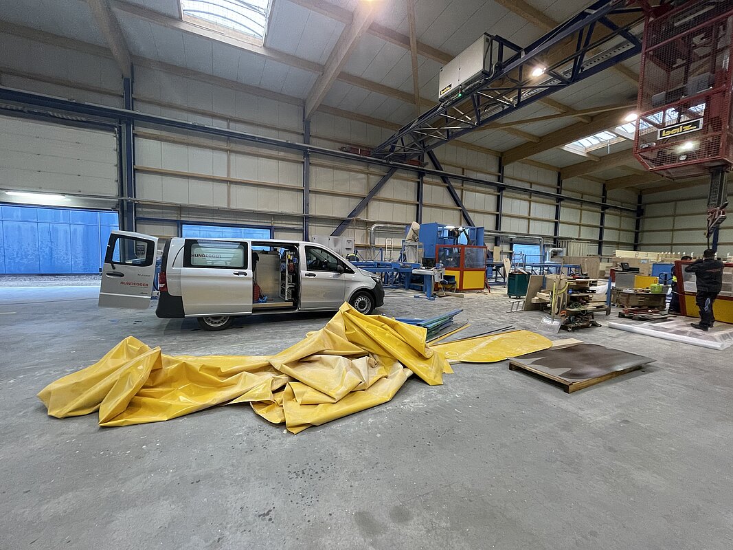 Heute Morgen begannen bei der HTA Mittelland die Umbauarbeiten zum Ersatz unserer bewährten Abbundanlage Robot Drive 625 durch das neuere Modell Robot Drive 650.