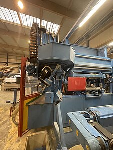 - Das Sägeblatt mit einem Durchmesser von 800 mm eignet sich neben dem Ablängen auch hervorragend zum Schlitzen. Das 5-Achs Aggregat um 360° drehbar und gleichzeitig um 180° neigbar.
